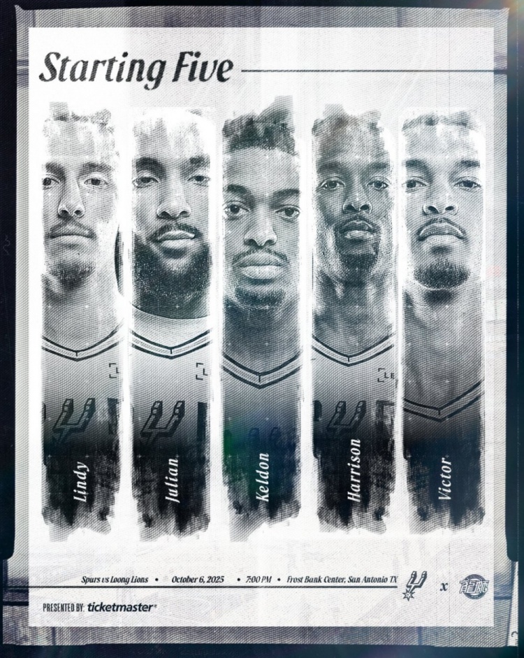 馬刺VS龍獅首發:沃特斯、尚帕尼、凱爾登、哈里森-巴恩斯、文班