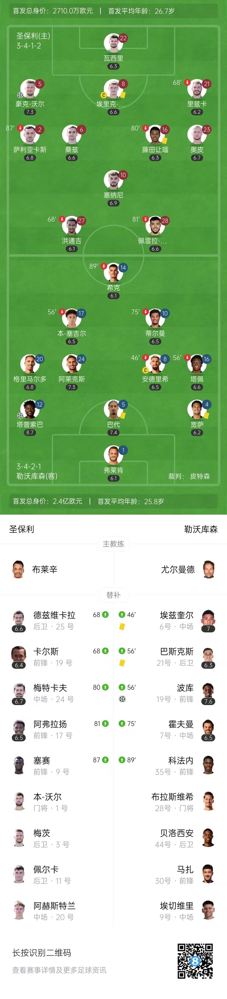 全場比賽結束,圣保利1-2勒沃庫森。