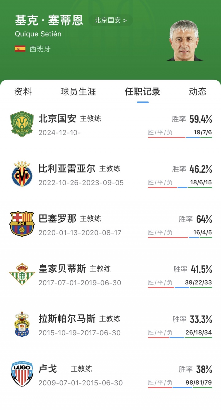 本賽季塞蒂恩執教北京國安,客戰山東泰山0-6慘敗,追平執教生涯第二大比分失利(2014年執教盧戈也曾0-6不敵赫羅納)。